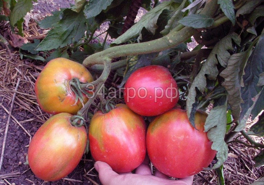 Цвет: спелые помидоры — розовые, незрелые — зелёные, с ярко выделяющимся тёмным пятном у плодоножки.