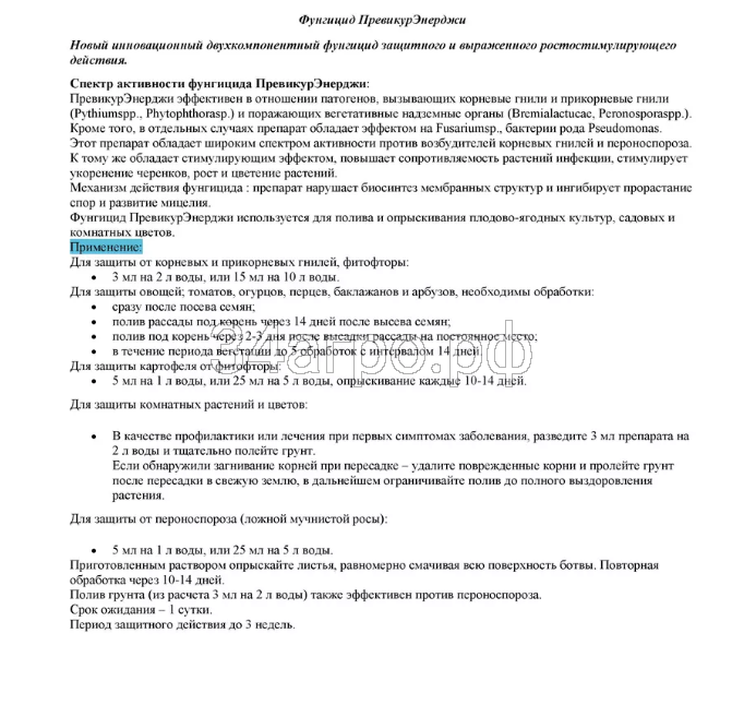 Применение:Для защиты от корневых и прикорневых гнилей, фитофторы: