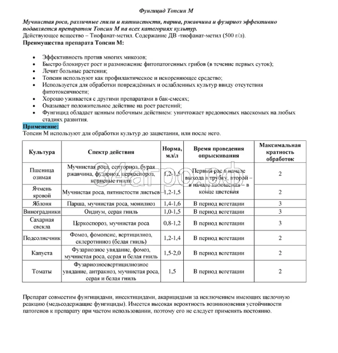 • Использование Топсин-М®, КС дает возможность разрабатывать максимально эффективные системы защиты и исключить возникновение резистентности у патогенов;
