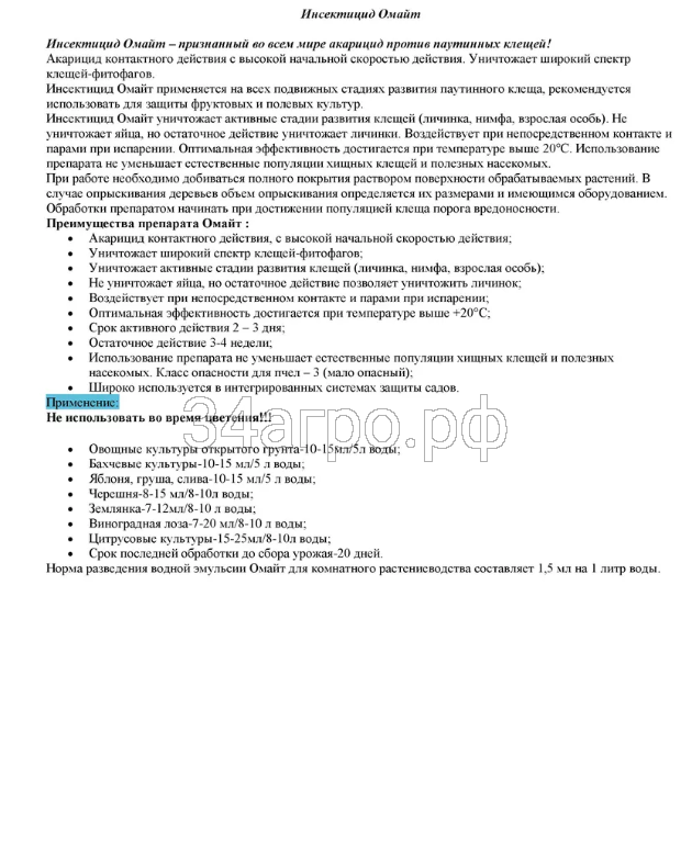 Инструкция по применению Омайт для комнатных растений: