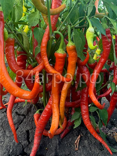 Перец «Бараний рог» — высокоурожайный сорт острого перца с длинными (20–35 см), скрученными по спирали глянцевыми плодами, напоминающими рога. Среднеспелый, высотой 50–100 см, подходит для открытого грунта и теплиц. Плоды весом 25–35 г имеют пикантный острый вкус, тонкие стенки (1,5–2 мм) и меняют цвет с зеленого/светло-желтого на красный.